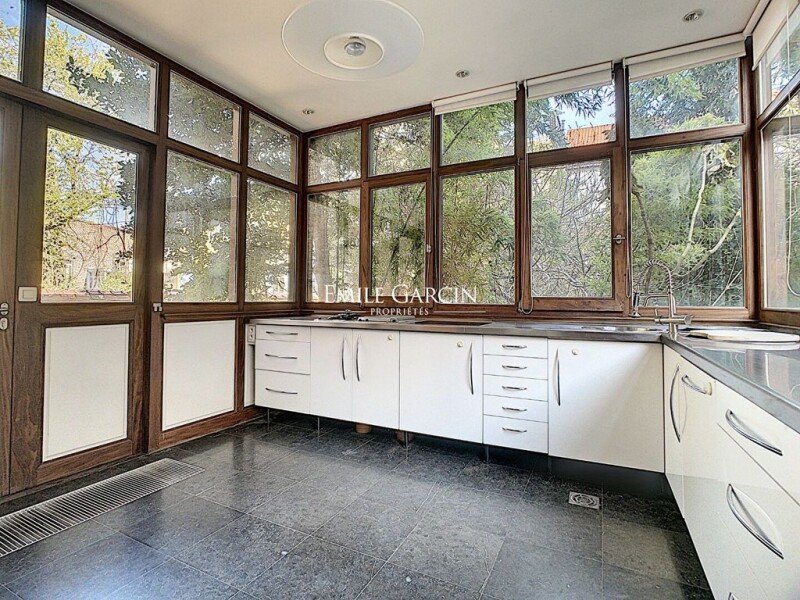 Boasting an exclusive location in the sought-after and secure Val de la Cambre square, opposite the Abbaye de la Cambre and close to the Étangs d'Ixelles, this elegant house presents 380 sq.m of living area in need of renovation. The ground floor comprises an entrance hall with cloakroom and guest WC, a home office, a service room or second office (potential for professional use), and a utility room. A lovely staircase leads to the first floor, which consists of two living rooms with access to the garden, plus a dining room and a kitchen. On the second floor, there is a master suite with a dressing room and bathroom, a bedroom and bathroom. On the top floor, you will find two additional bedrooms and a shower room. Several cellars. Single garage. All floors are served by an elevator. Option to purchase another garage in the square (150,000 EUR). All windows have been recently replaced. Beautiful renovation project by Olivier Lempereur.