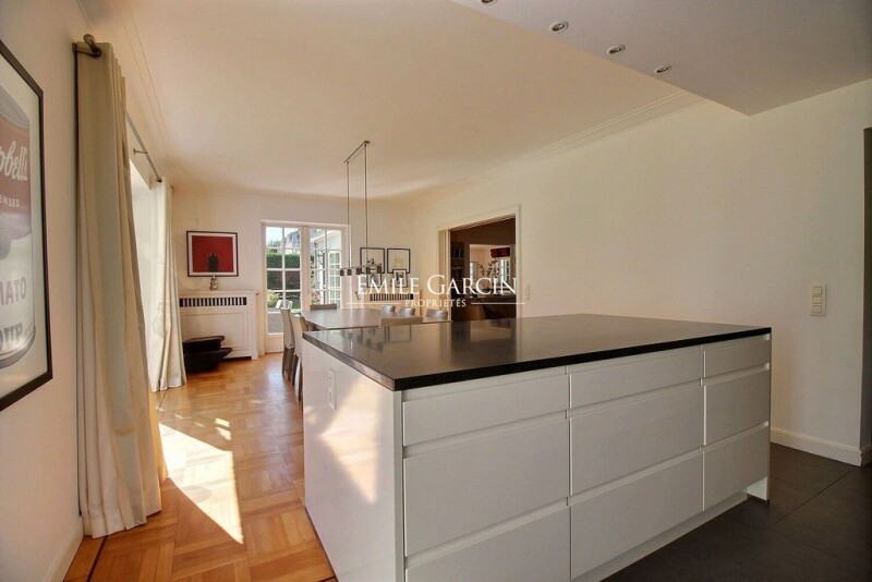 Rhode Saint Genèse. Idyllically located on the edge of the Forest, in an elegant and quiet avenue within the former Golf de Waterloo, this house is within easy reach of all local amenities and public transport connections. This beautiful family property presents approximately 455 sq.m of living area on over 18,000 sq.m of leafy grounds (not overlooked). The ground floor consists of a pretty entrance hall with guest cloakroom, beautiful large reception rooms with an open fire, a pleasant fitted kitchen with bright dining area and service entrance, and a utility room with access to the double garage. On the first floor, you will find a master bedroom with built-in cupboards and adjoining bathroom, an office/bedroom backing onto a large terrace, two other beautiful bedrooms and a bathroom. On the second floor, there is a large central space, two large bedrooms, a bathroom and a shower room. The reception rooms all back onto the terraces and the south-west facing garden. Bathed in natural light. Warm and comfortable. Energy performance: 369 kwh/sq.m.