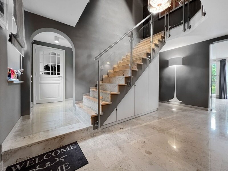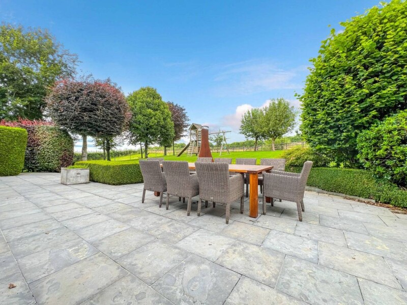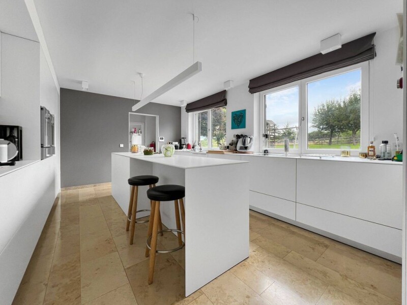 Exceptional property ideal for horse owners Exceptional villa in great quiet. Completely renovated in 2014 with high-end materials. The villa offers: on the ground floor: entrance hall, dining room (26 m2), living room (55 m2) with wood cassette, bar/ game room (22m2), professional kitchen Bulthaup (20m2), back kitchen, laundry, garage 2 cars, cellar. On the floor: Night hall, master suite: room 40m2 (cupboards, wooden cassette, air conditioning), dressing room, bathroom (jet bath, shower, double sink, wc) + 3 bedrooms (18 - 14 - 12 m2), dressing room, bathroom (bath, shower, washbasin). several terraces. 1 additional garage outside (40 m2). Land of 1ha 30 ares fully fenced, 3 paddocks in grass, 1 white sand drained equestrian track (upper layer to renovate), 1 wooden building Klepper (2 boxes, internal corridor, storage space 40 m2). A plot is buildable. Very high quality finishes, high security (alarm, cameras), ventilated cellars and vacuum insulated, oil boiler (2022), air-conditioned wine cellar, triple glazing frames, many built-in cupboards, floor heating. Pool project. The house can be sold furnished. PEB class B!!! Number 20240823006250 Spec: 117 kWh/m2.an - Etot: 44.001kWh/year.